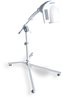 The device is available with an ergonomic table stand that can be combined with a functional floor stand, allowing flexible use in domestic and professional environments. Easily adjustable height and head inclination as well as the ability to rotate the device head up to 360° allow a convenient usage in nearly any position. Treatments can easily be timed by a control panel down to 30 seconds.